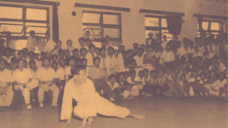 The MOODUKKWAN, translated as "martial virtue gymnasium," was founded on November 9, 1945 in Seoul, Korea, by Hwang Ki. It was one of the five original Kwans which were opened after the liberation from Japan, at the end of World War II. On May 7, 1947, Hwang Ki, Moodukkwan Central Director, dispatched instructors Nam Sam Hyun and Lim Myung Soon to Daejeon (the first branch gymnasium in the country), where they taught Tangsoodo, at the baseball field and yard of the Daejeon's Gwangjang Square, near the railroad depot. From 1950-1953, training was disrupted due to the Korean war.